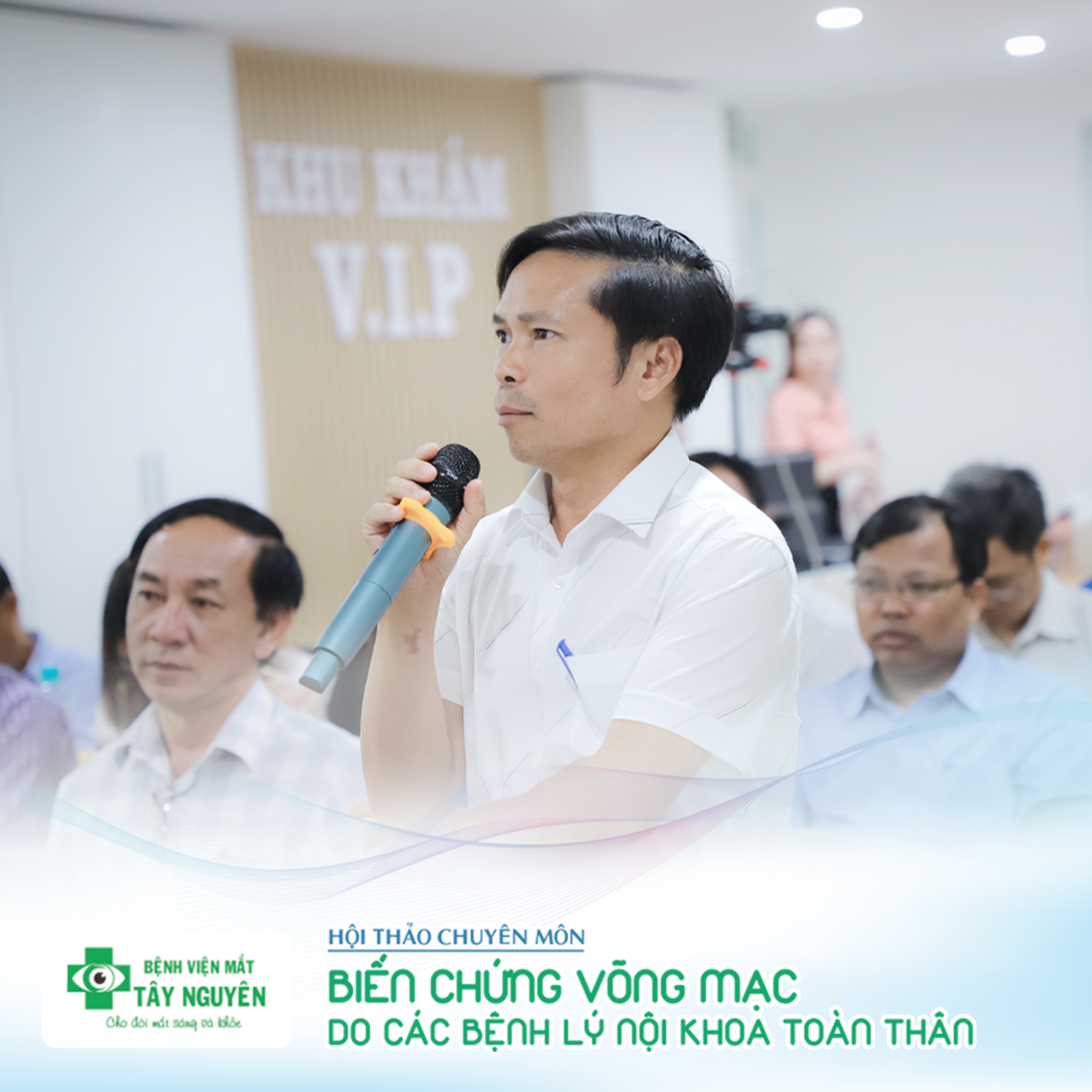 Tham gia buổi Hội thảo, cùng lắng nghe bài Báo cáo khoa học: “BỆNH LÝ VÕNG MẠC ĐÁI THÁO ĐƯỜNG”, “TẮC TĨNH MẠCH VÕNG MẠC” của Ths BS H Nơm Ayun và Báo cáo ca bệnh lâm sàng của BS CK1 Võ Ngọc Xuân Bích về hướng điều trị cho bệnh nhân chiếm phần lớn vẫn là bệnh võng mạc ĐTĐ và bệnh tắc mạch võng mạc (thường có nguyên nhân từ các bệnh lý toàn thân: ĐTĐ, THA, rối loạn mỡ máu, tình trạng tăng đông máu mắc phải/di truyền, sarcoide, lupus, thuốc..)