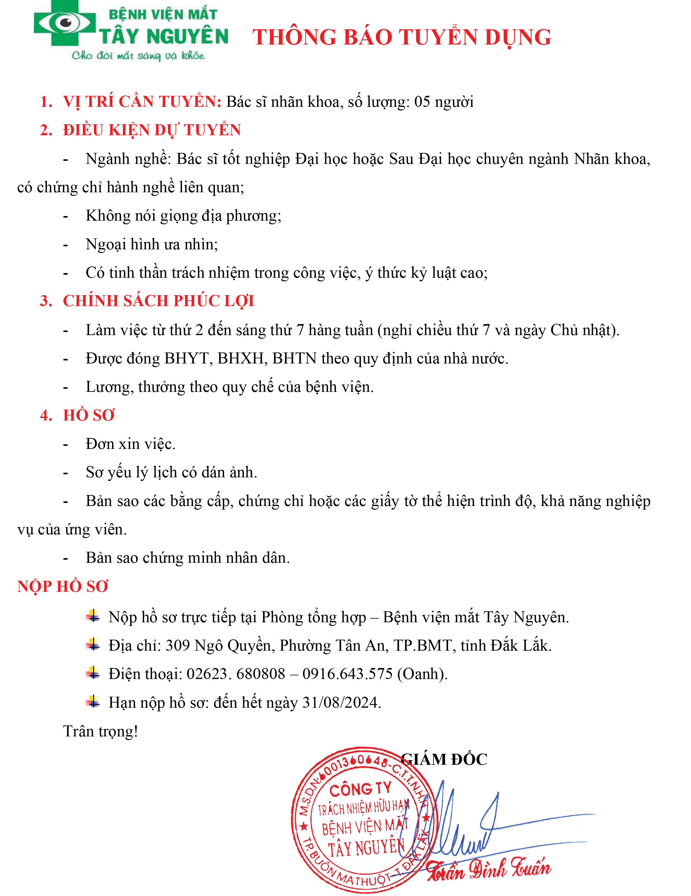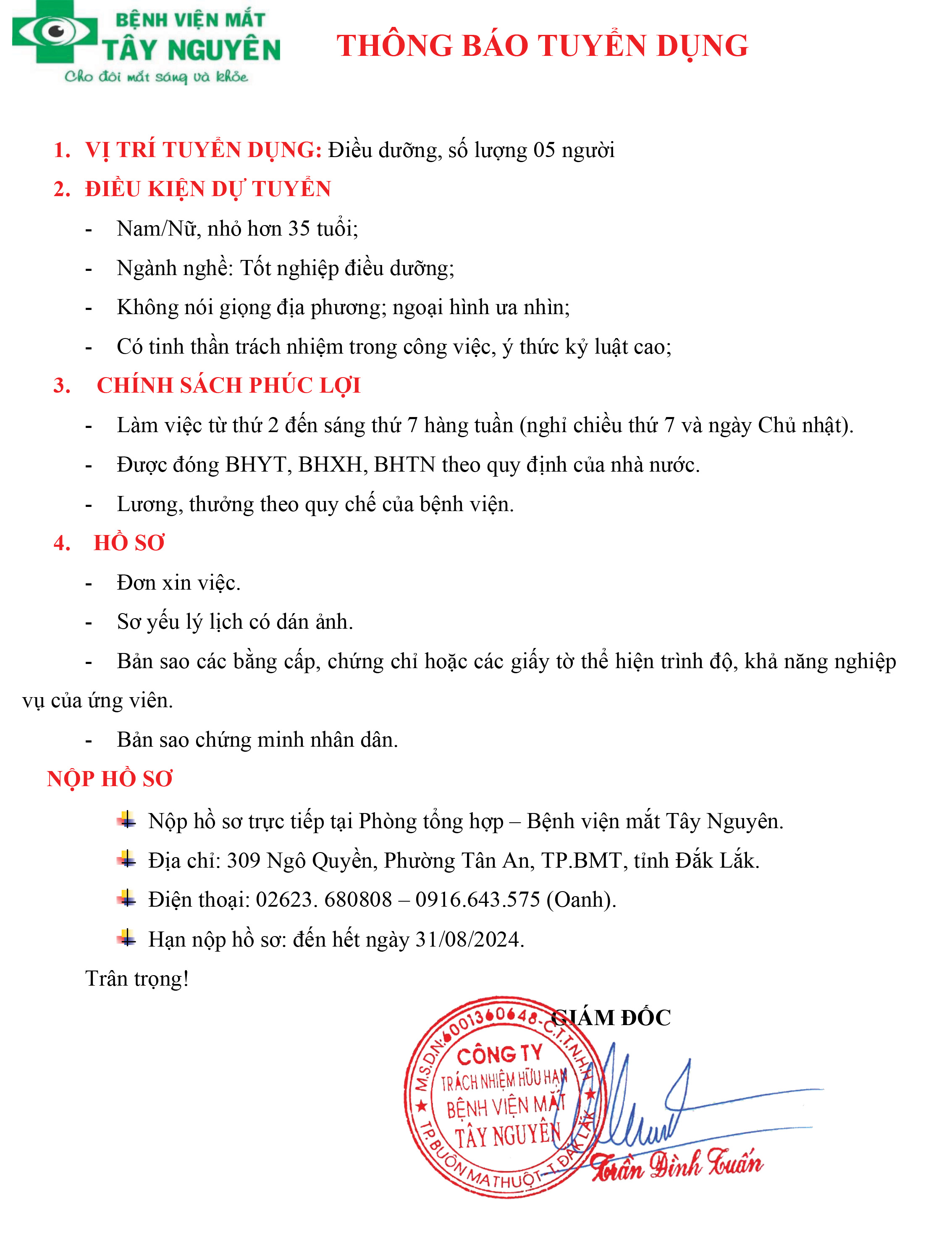 MẮT TÂY NGUYÊN TUYỂN DỤNG 2024