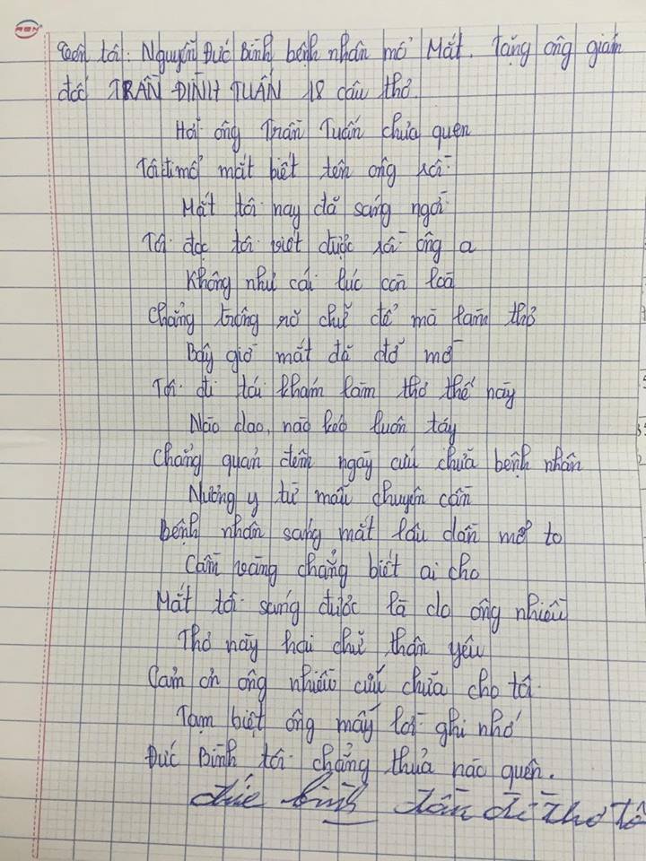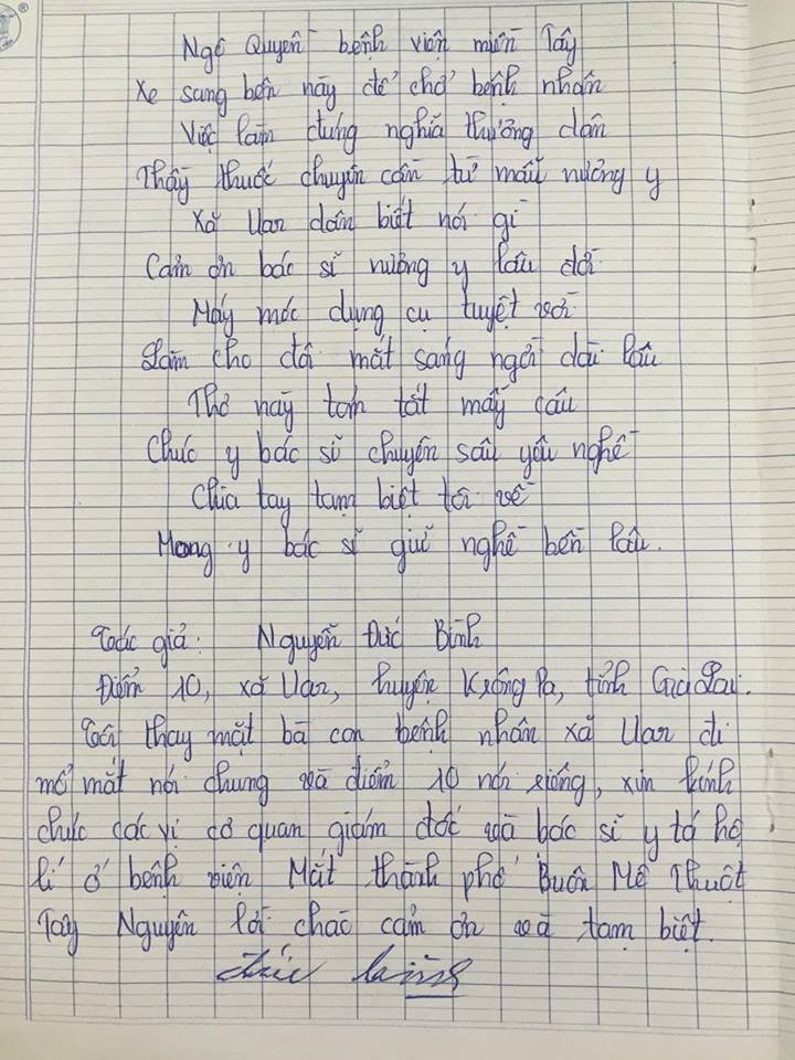 Bệnh viện mắt Tây Nguyên xin chúc mừng ông đã có lại được niềm vui sống nhờ đôi mắt sáng, chúc ông luôn mạnh khỏe và giữ được tinh thần lạc quan như hiện tại.Xin chân thành cảm ơn tấm lòng của ông.