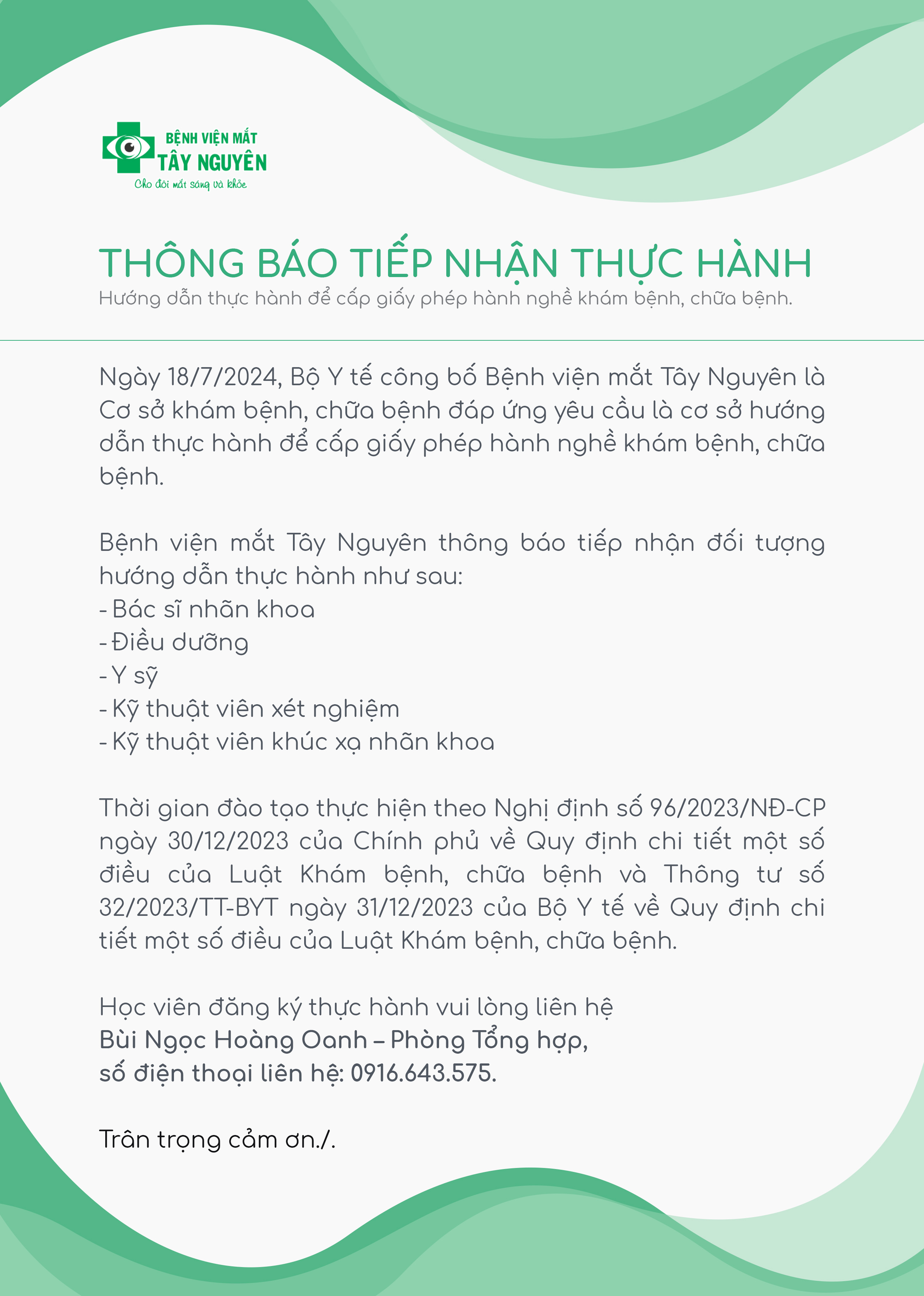 THÔNG BÁO TIẾP NHẬN THỰC HÀNH