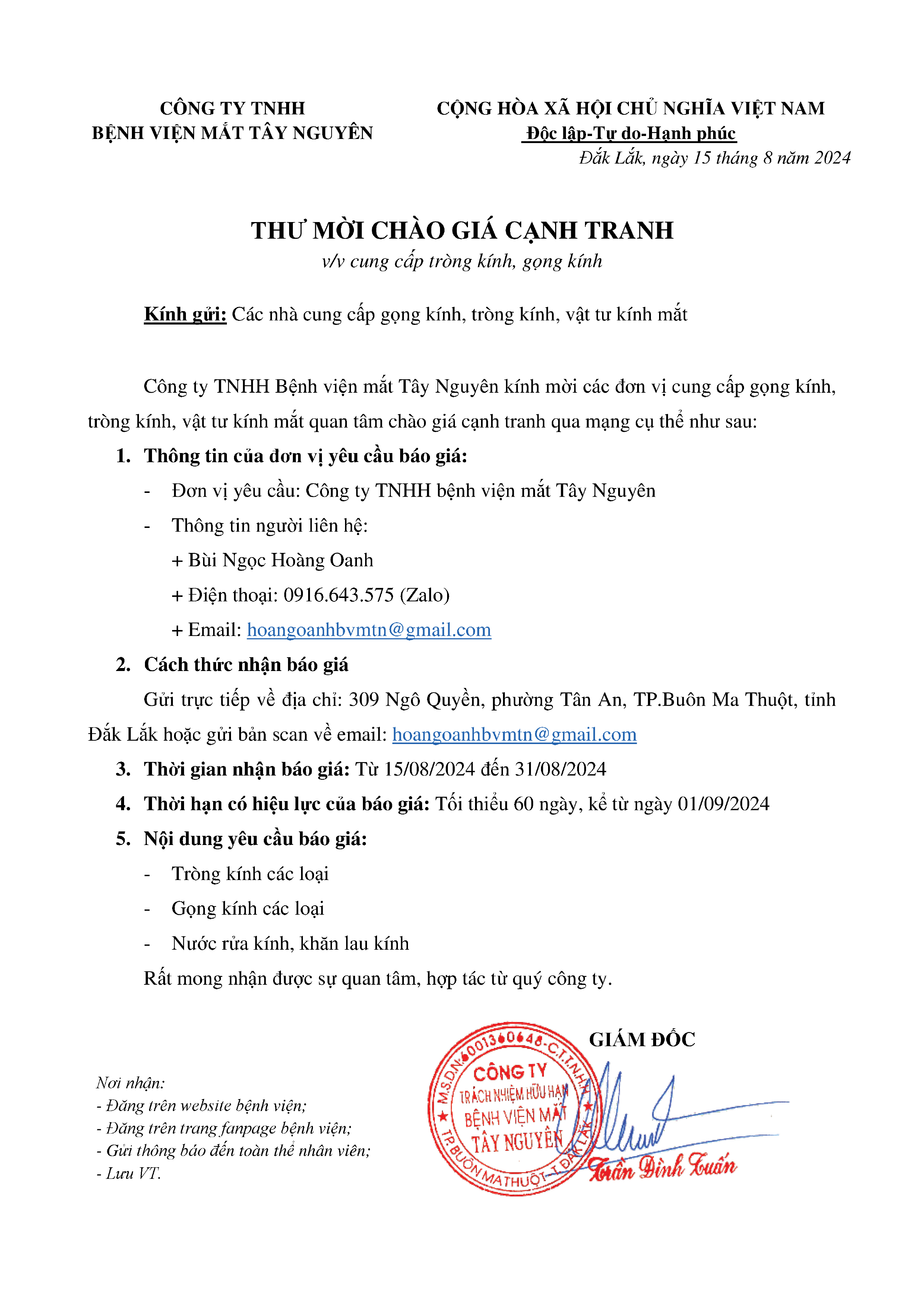 THƯ MỜI CHÀO GIÁ CẠNH TRANH